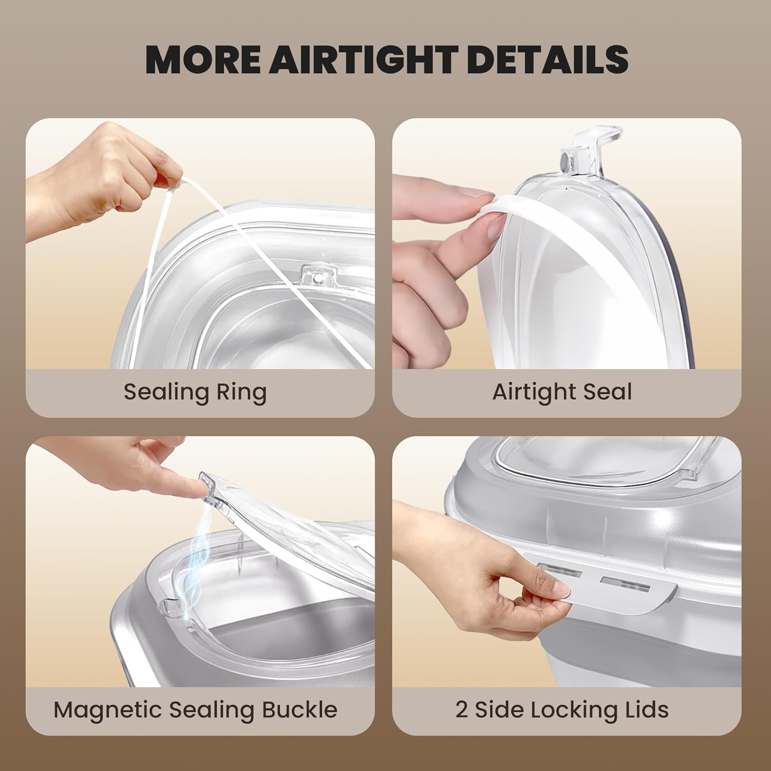 - Superior Sealing for Freshness: Our dog food storage bin is designed with a double airtight seal and 4 secured latches, ensures your pet’s food stays fresh longer, free from moisture.