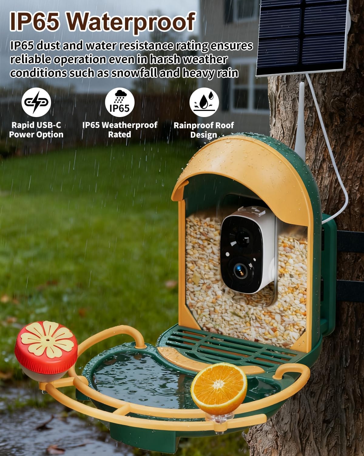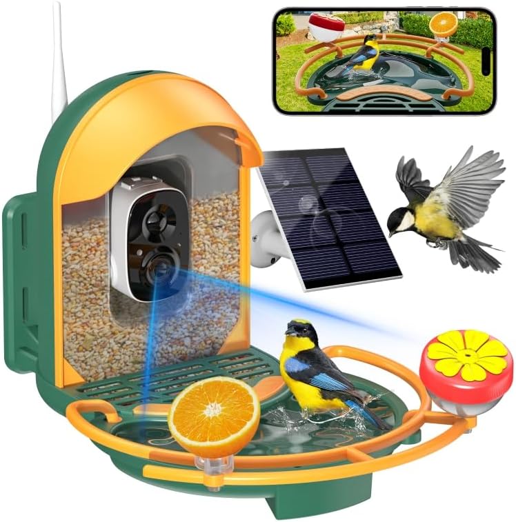 - 【2-in-1 Bird Feeder & Bath with Camera】Attract more birds with food AND fresh water! This unique bird feeder with camera and bath features a removable water basin for drinking and bathing. Watch all the action in live 2K HD video right from your phone.
