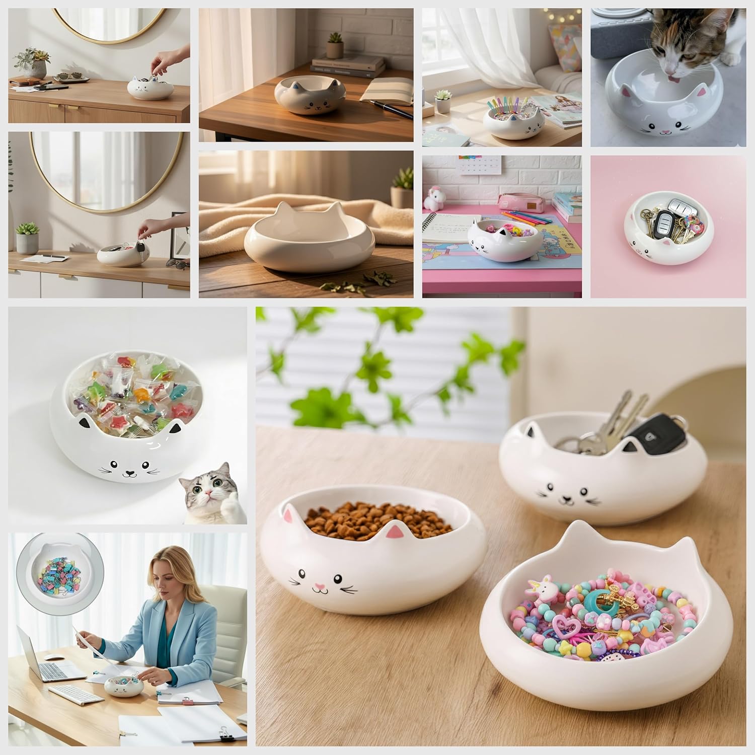 - 【Design】The Ceramic Cat Bowls with the cute Kitten Ears blends into all types of Room decor. This will be a wonderful gift for cat lovers.Aslo Great Use for Key Bowl & Jewelry Tray or Soap Dish etc.