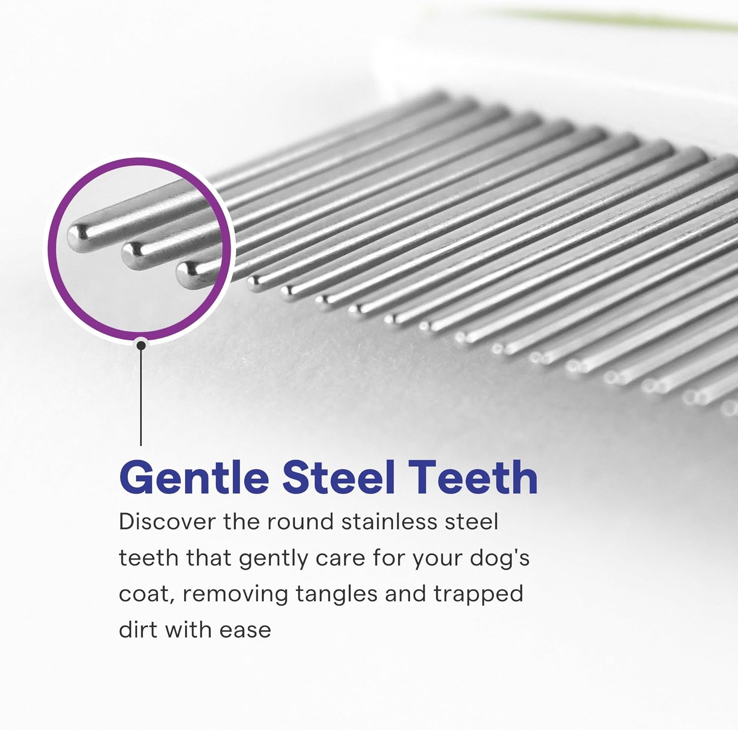 Dog & Cat Comb – Removes Tangles, Knots, and Matted Fur – Grooming Tool with Stainless Steel Teeth and Non-Slip Handle – Best Pet Hair Comb for Home Grooming Kit – Includes eBook Guide