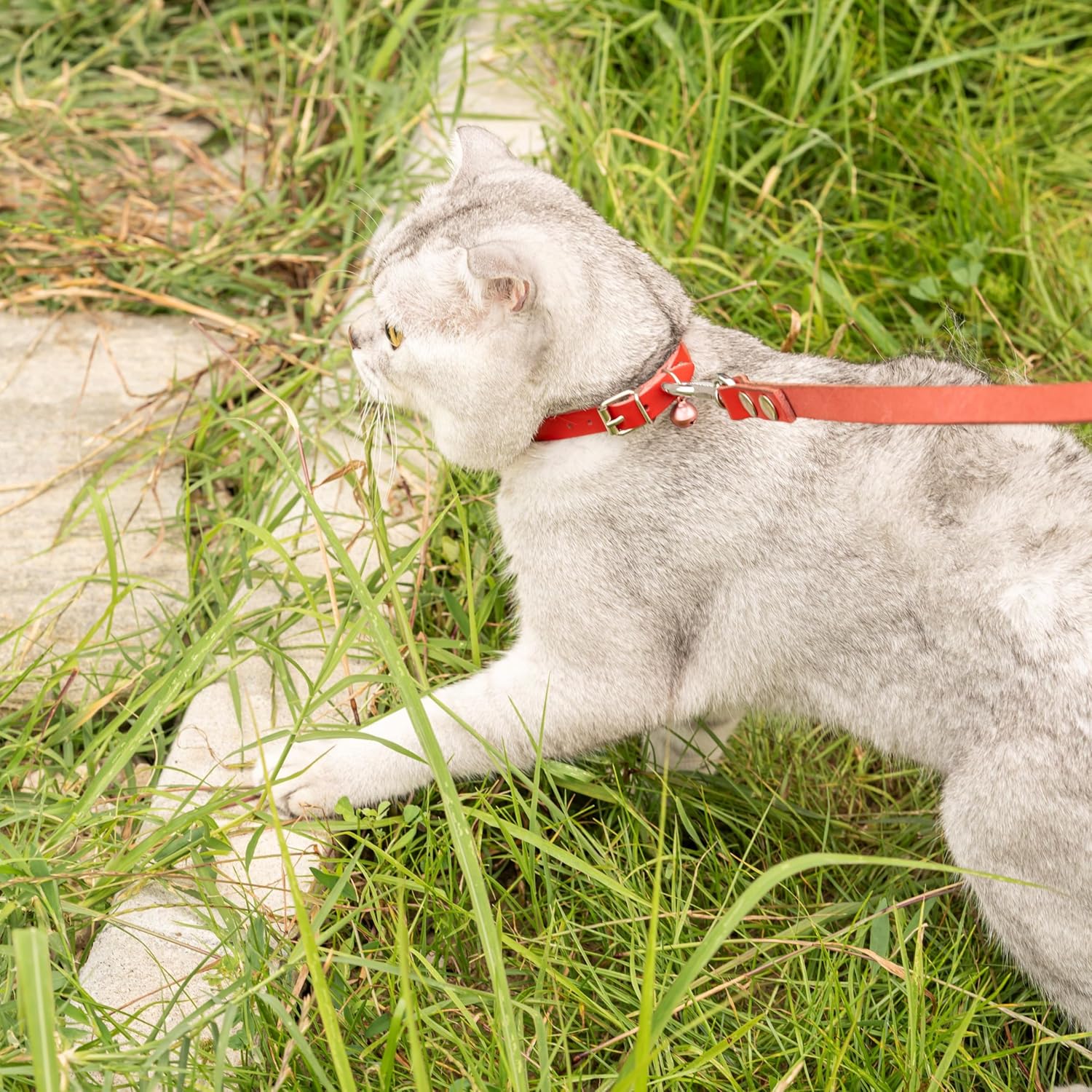 • STYLISH DESIGN & COLORS🎨: Overall minimalist design cat collars non breakaway and secure fit. The stainless brass bell 🔔imparts a delighted look and functionality. The reflective stripe on the leather cat collar enhances their visibility against accidents. We are responsive sellers and closely monitor our cat people’s popular searches 📈such as brown leather cat collar with bell, cat safety collar leather & red, black bird warning cat collar, and beginning with five colors