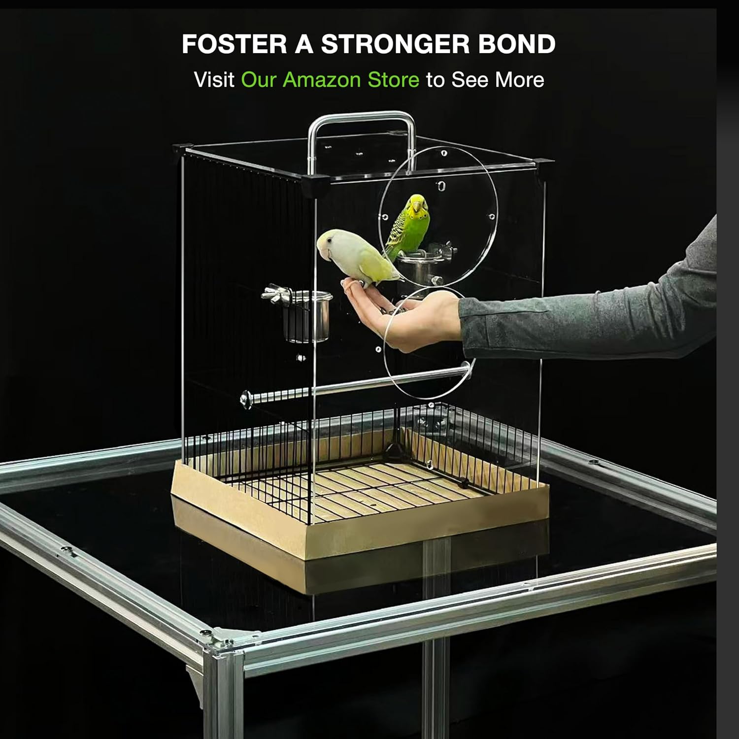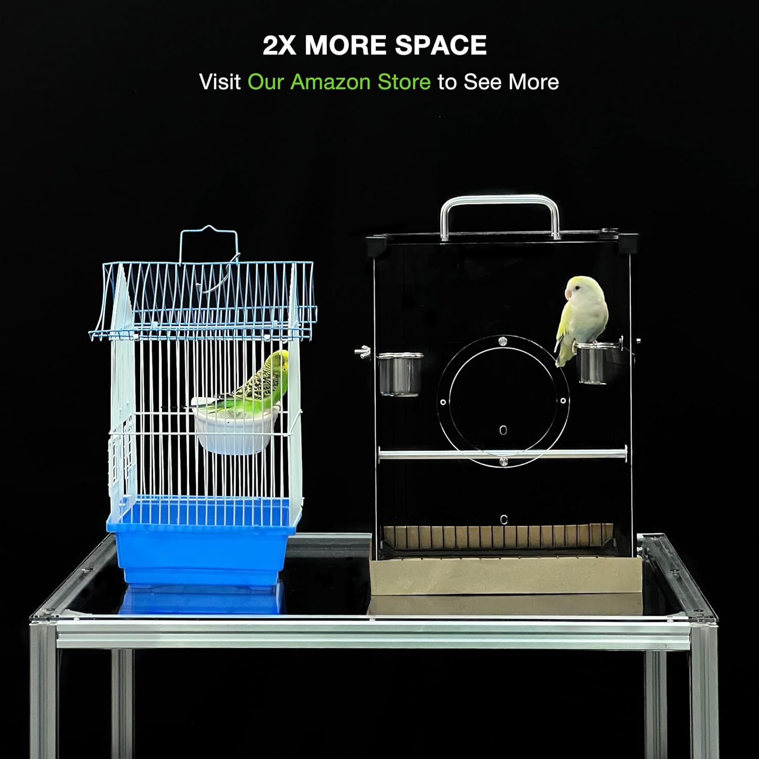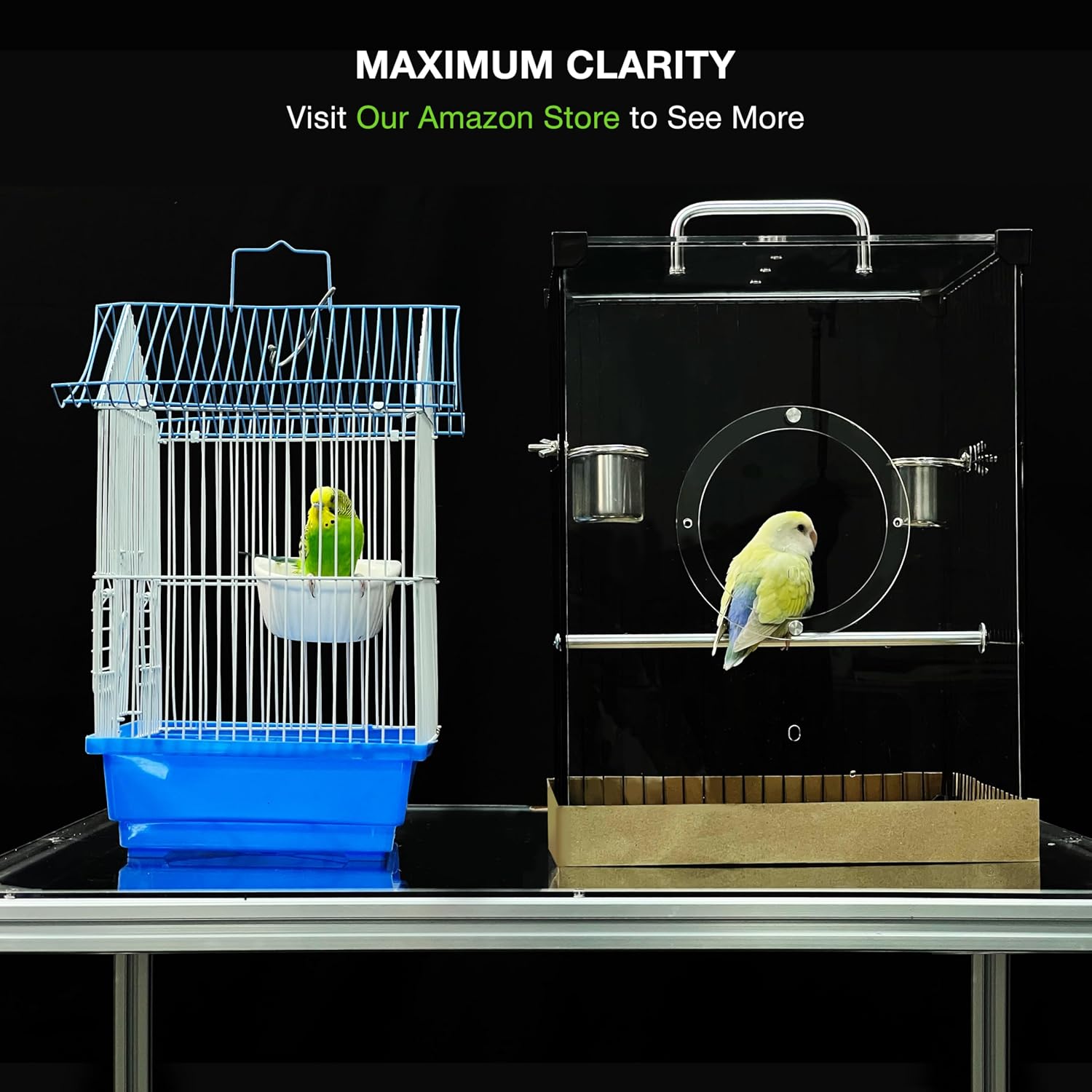 - MAXIMUM CLARITY – In traditional wire cages, your view is blocked by bars and shadows, making it hard to truly see your bird. With our acrylic design, nothing stands in the way. You get a crystal-clear, unobstructed view, letting you appreciate every feather, every hop, and every quirk without distraction.