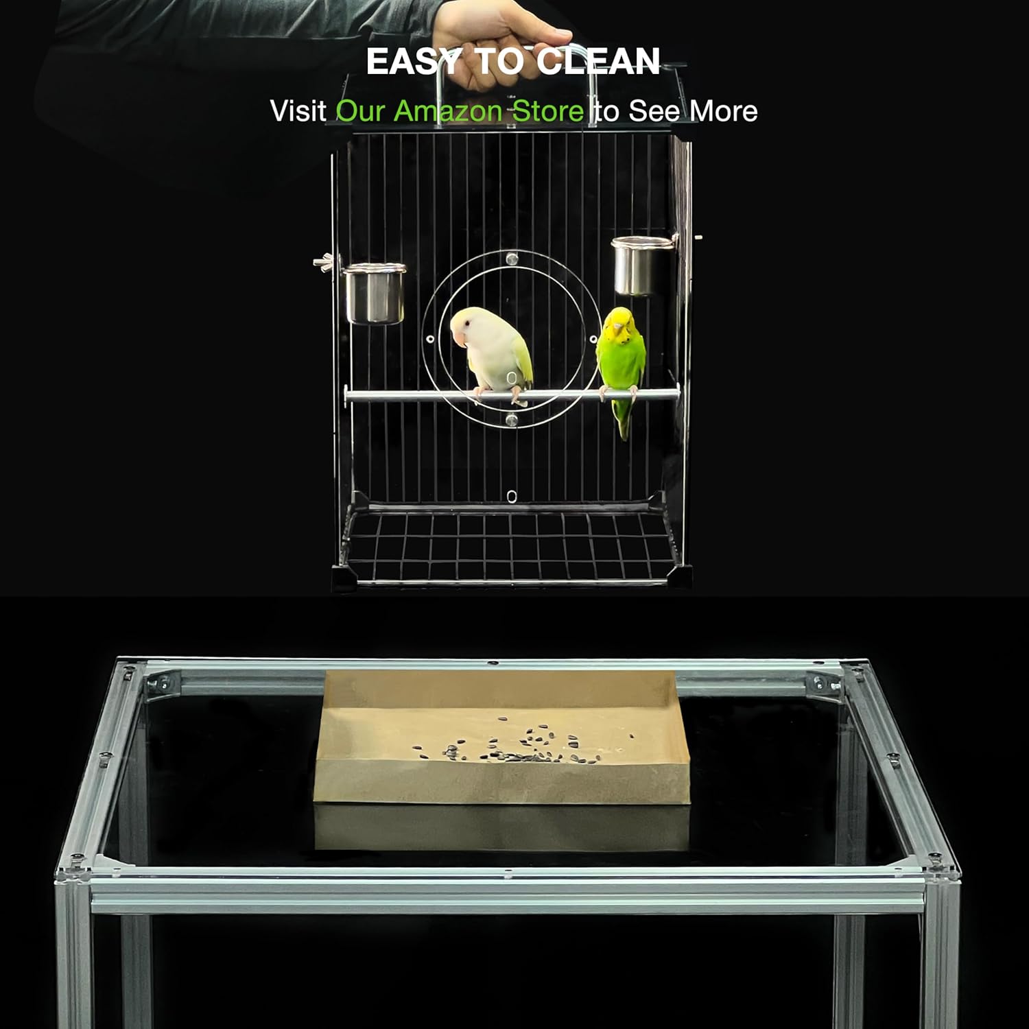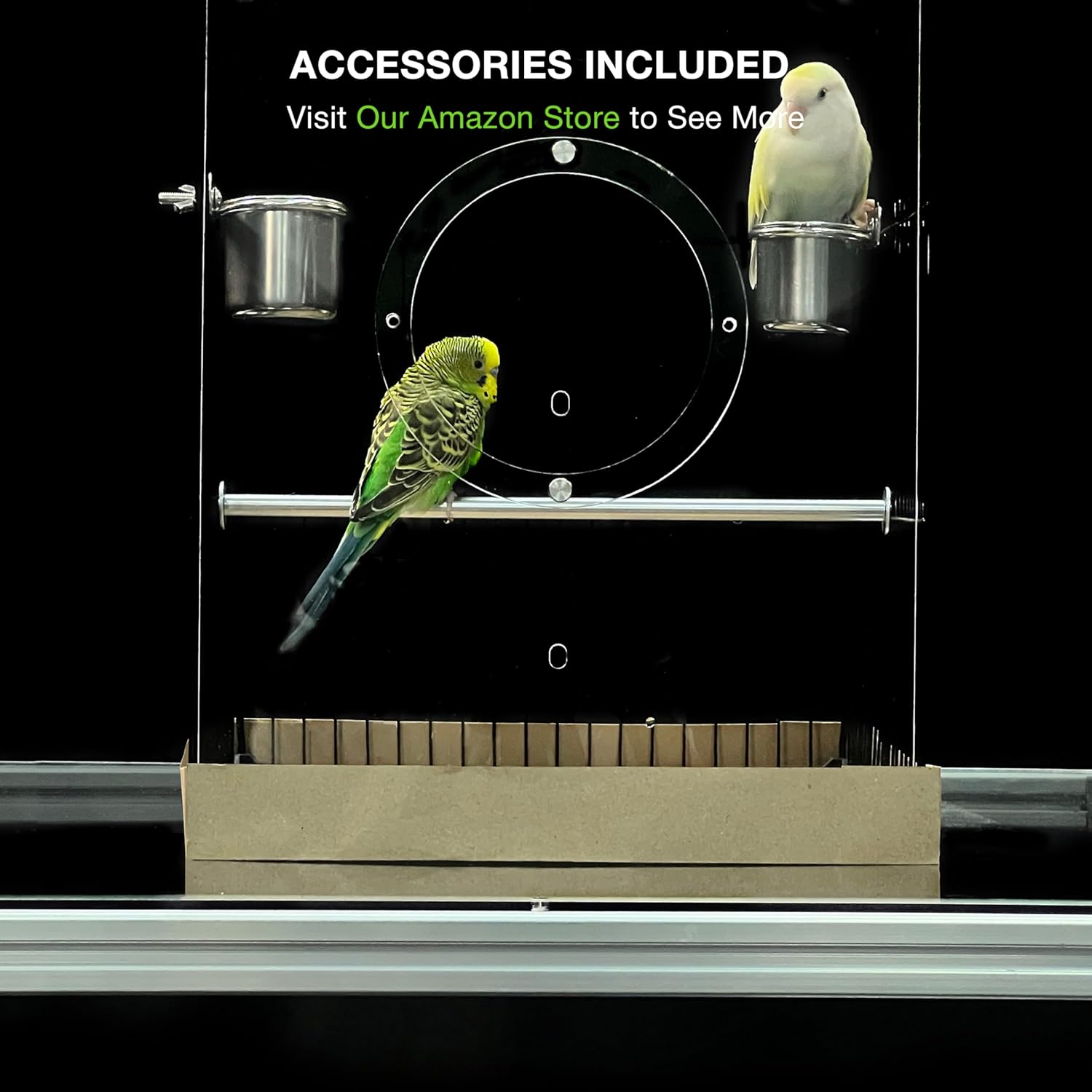 - MODERN DESIGN – Built with thick acrylic panels, aluminum handles, aluminum perches, and stainless steel feeders, this cage combines durability with a sleek glass-and-steel look—finally, a modern design without the plasticky feel.