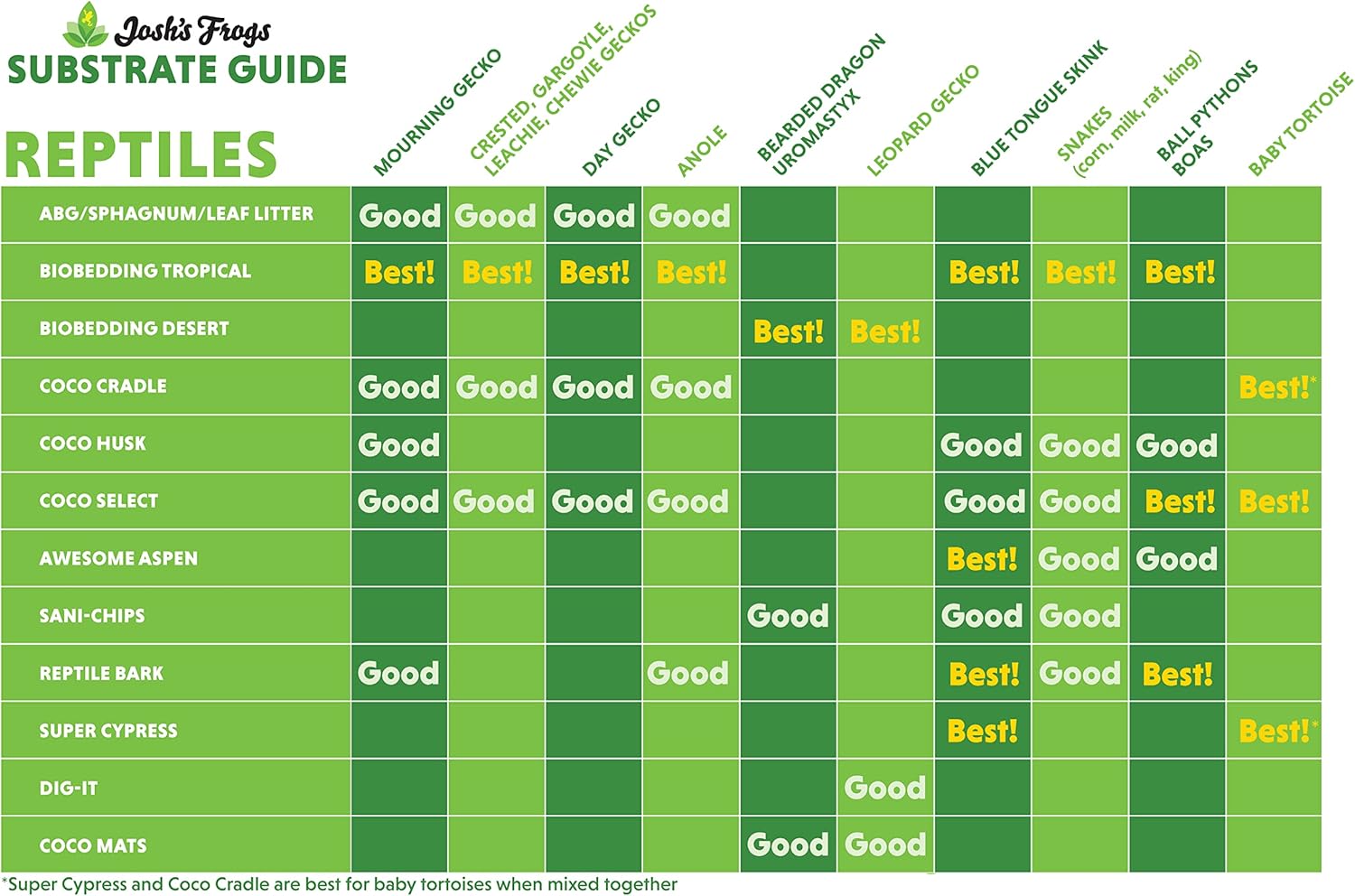 - MORE UNIQUE SUBSTRATES from Josh’s Frogs! We also offer Dig-It, ABG Mix, Coco Cradle, Bio Bedding, incubation media, feeder insect beddings, various shredded barks like Aspen, Cypress, Pine, and more!