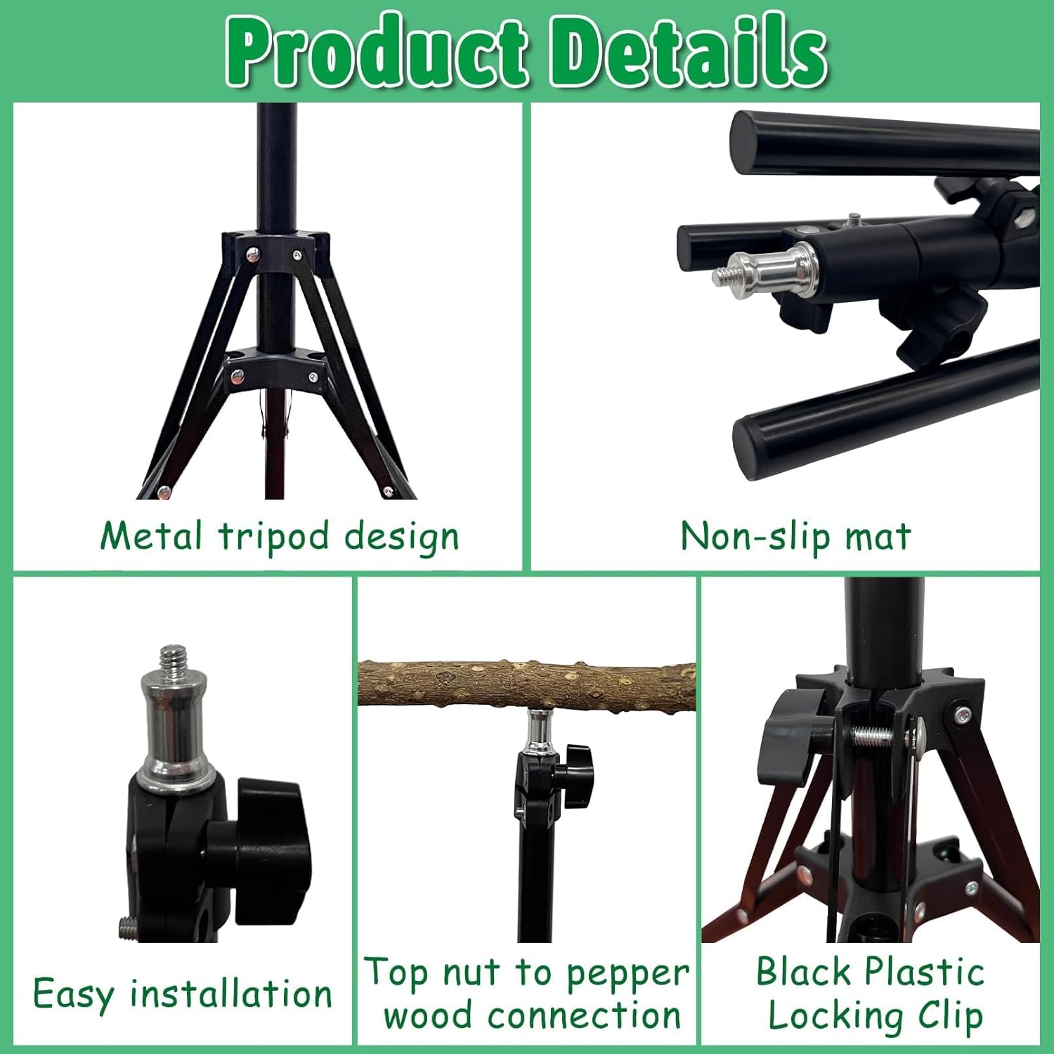 - High Quality Material: This bird tripod is made of high quality metal, which is not only sturdy but also stable. The branches of the bird perch are made of pepper wood. Pepper wood itself has a certain special flavor