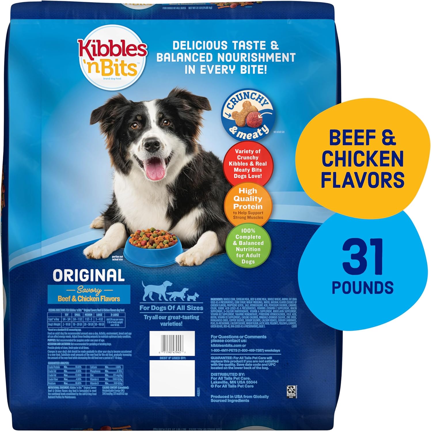 - Contains 1 – 31 Lb Bag of Kibbles ‘n Bits Original Savory Beef & Chicken Flavor Dry Dog Food