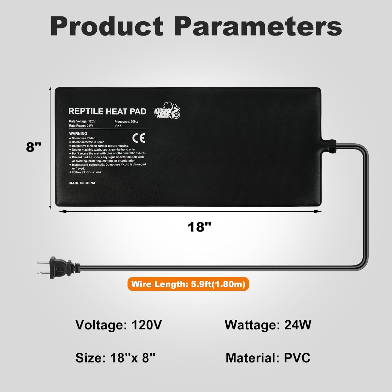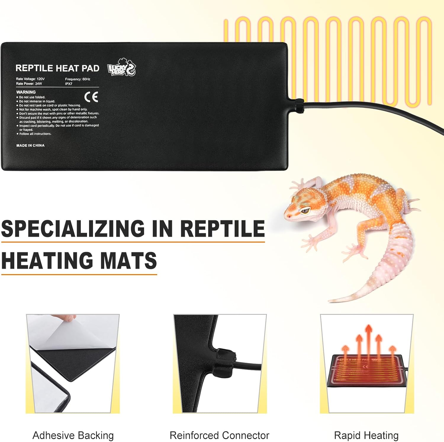 - Energy Efficient: LUCKY HERP reptile heating pad features a low-power 24W design, yet it can quickly reach the desired temperature within minutes, eliminating long wait times. With fast heating, your pets or plants can enjoy optimal warmth quickly, without wasting extra time or energy. Even with continuous use, the power consumption remains minimal, maximizing energy savings.