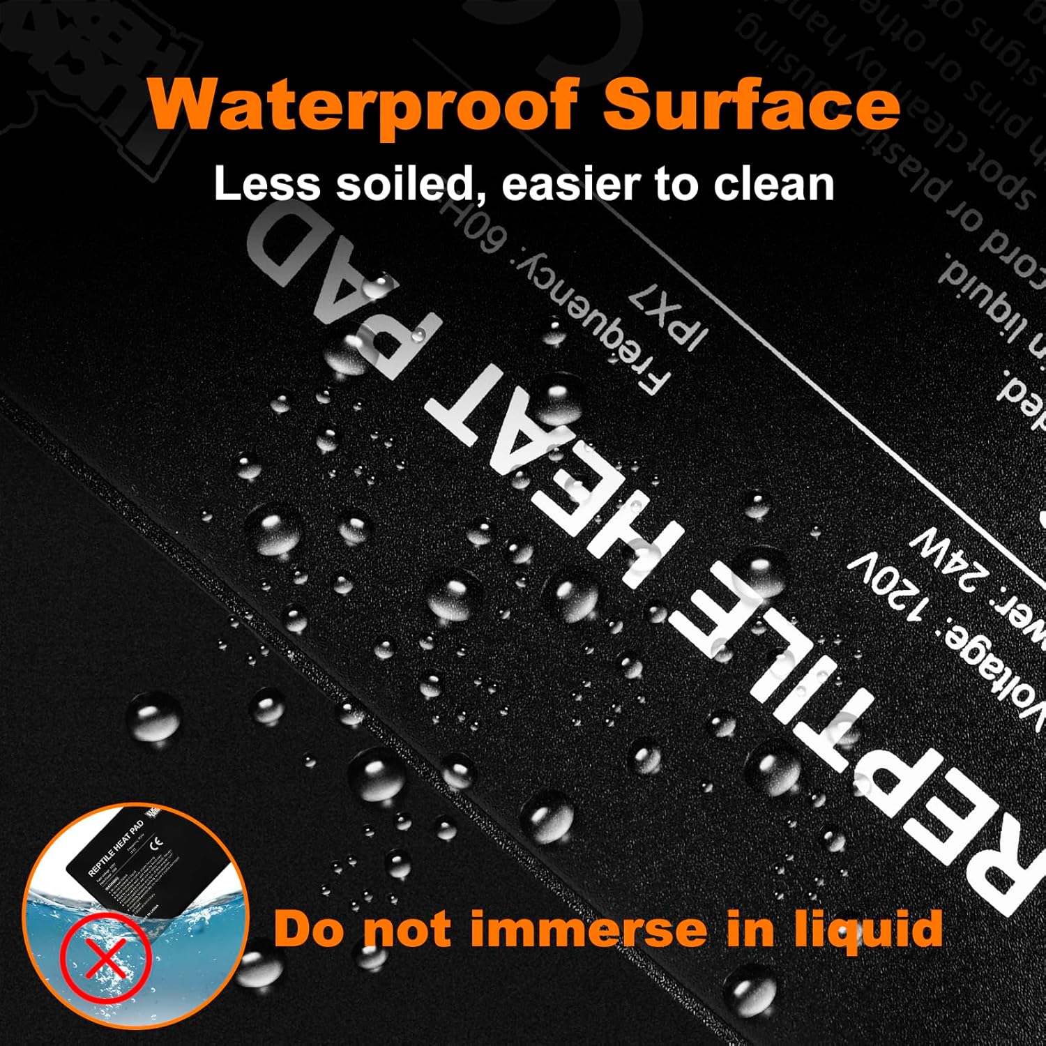 - Waterproof & Durable Material: The reptile heating pad is made from high-quality waterproof PVC material, ensuring quick and even heat distribution, along with long-lasting durability. Its soft surface is flexible and foldable for easy installation and storage. The pad is also easy to clean and boasts excellent abrasion resistance for long-term use.