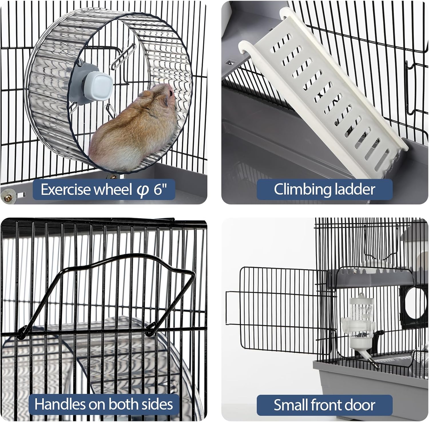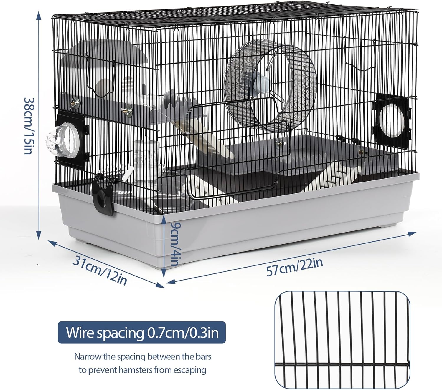 - MEDIUM-SIZED HAMSTER CAGE: The dimensions of the small animal cage are 22″Lx12″Wx15″H, with a wire spacing of 0.3″ (subject to slight error due to manual measurement). It’s suitable for dwarf hamsters, Syrian hamsters, gerbils, mice or other small animals.
