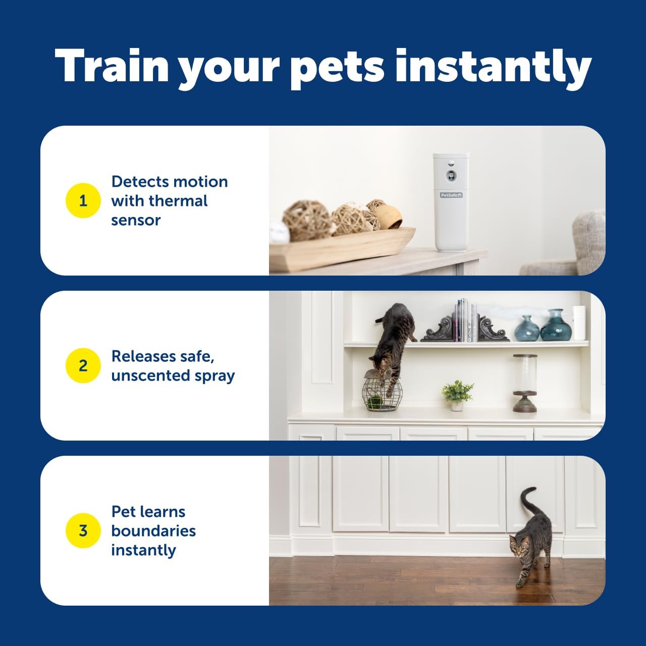 - Behavior Training Made Simple: The PetSafe SSSCAT Automatic Spray Pet Deterrent supports hands-free pet training by keeping pets away from off-limits areas using a motion sensor air burst