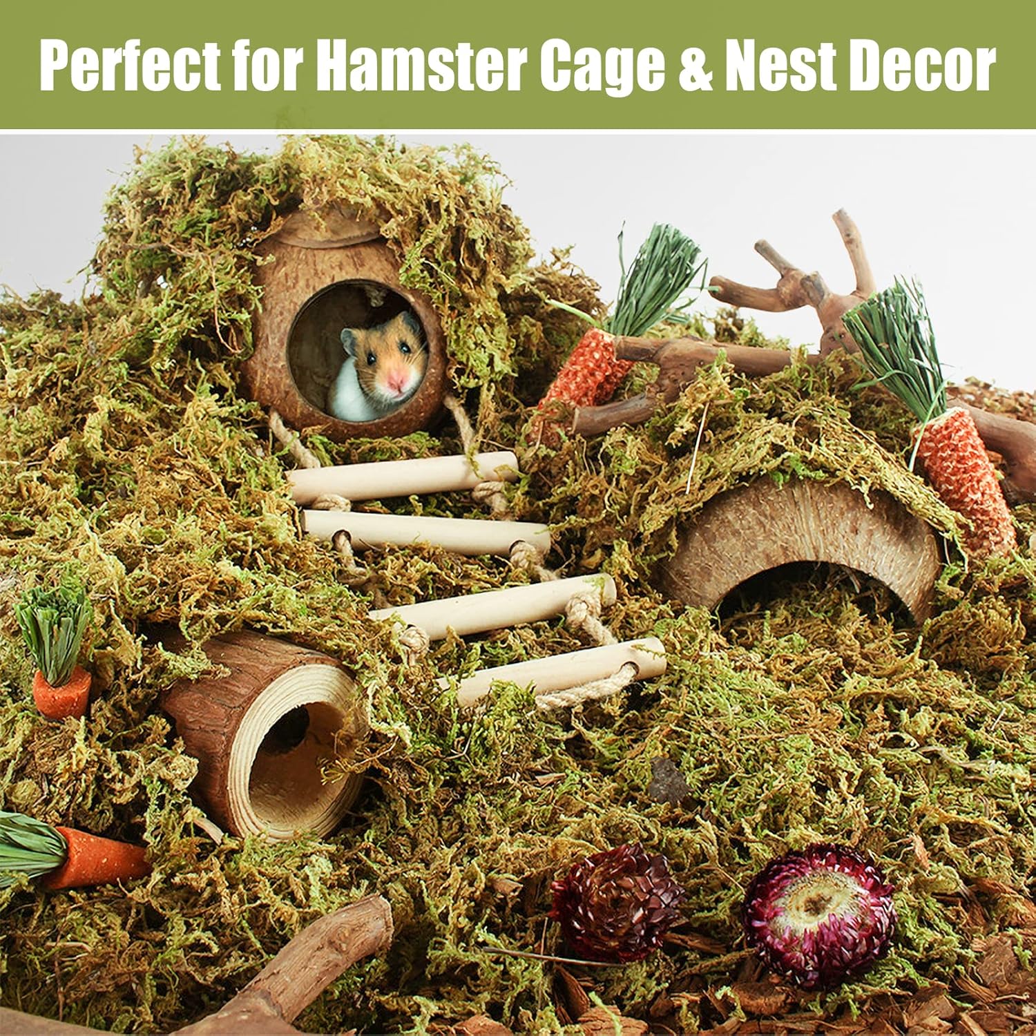 • Hamster Moss Bedding Nesting: Soft moss bedding can be used not only as moss bedding for hamsters but also for them to dig and hide, creating their own nest. Hamsters can play and explore as they would in the wild, greatly enriching their lives. This would be a fantastic gift for your little cutie