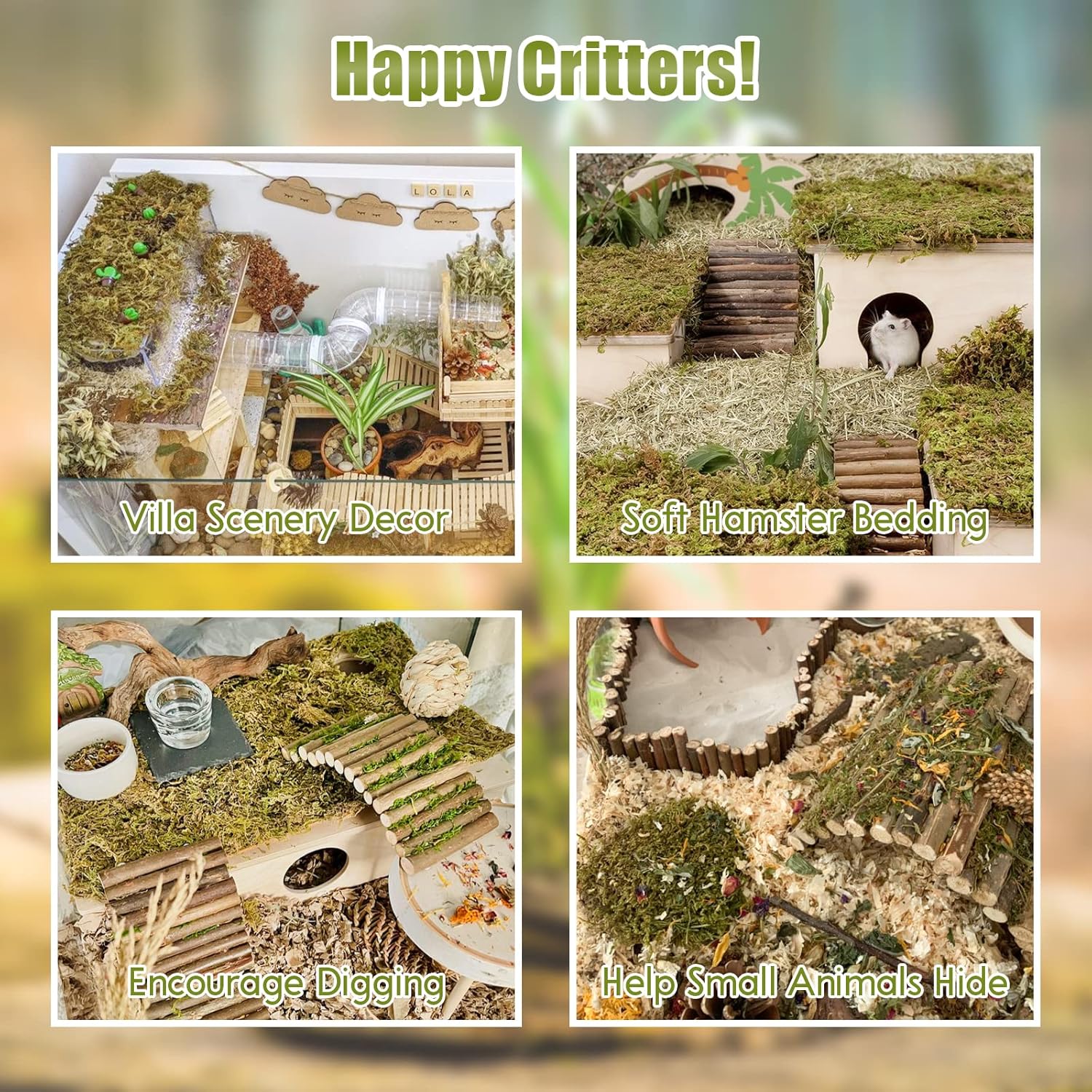 • Moisture Control & Absorption: Our hamster moss is made of 100% natural dried forest moss, clean and soft and smells pleasant, dry moss material can help absorb odors and excess moisture in the habitat, your hamsters will love it, it makes their enclosures more interesting and natural