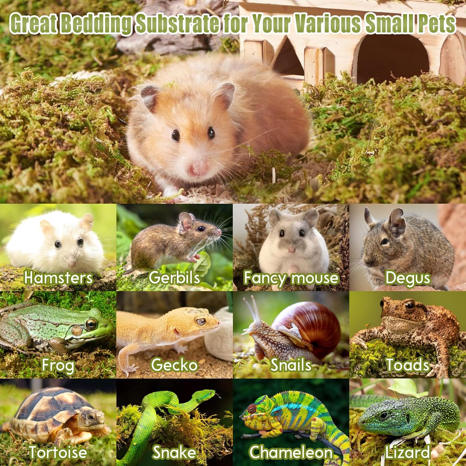 • Great Moss Bedding for Small Animals: Our dried forest moss is suitable for rodents pets or small pets like hamsters, Gerbil, degus, frogs, etc, and other reptiles like lizards, geckos, chameleons, tortoises, snakes, snails, etc. Pet lovers are right to choose it