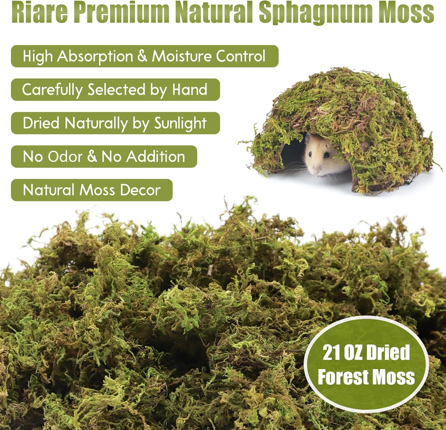 Riare 25QT Natural Hamster Moss Bedding Nesting-Soft Forest Moss Hamster Habitat Reptile Moss for Dwarf Syrian Hamsters, Mices, Gerbils, Reptiles, Small Pets (1.3LBS)