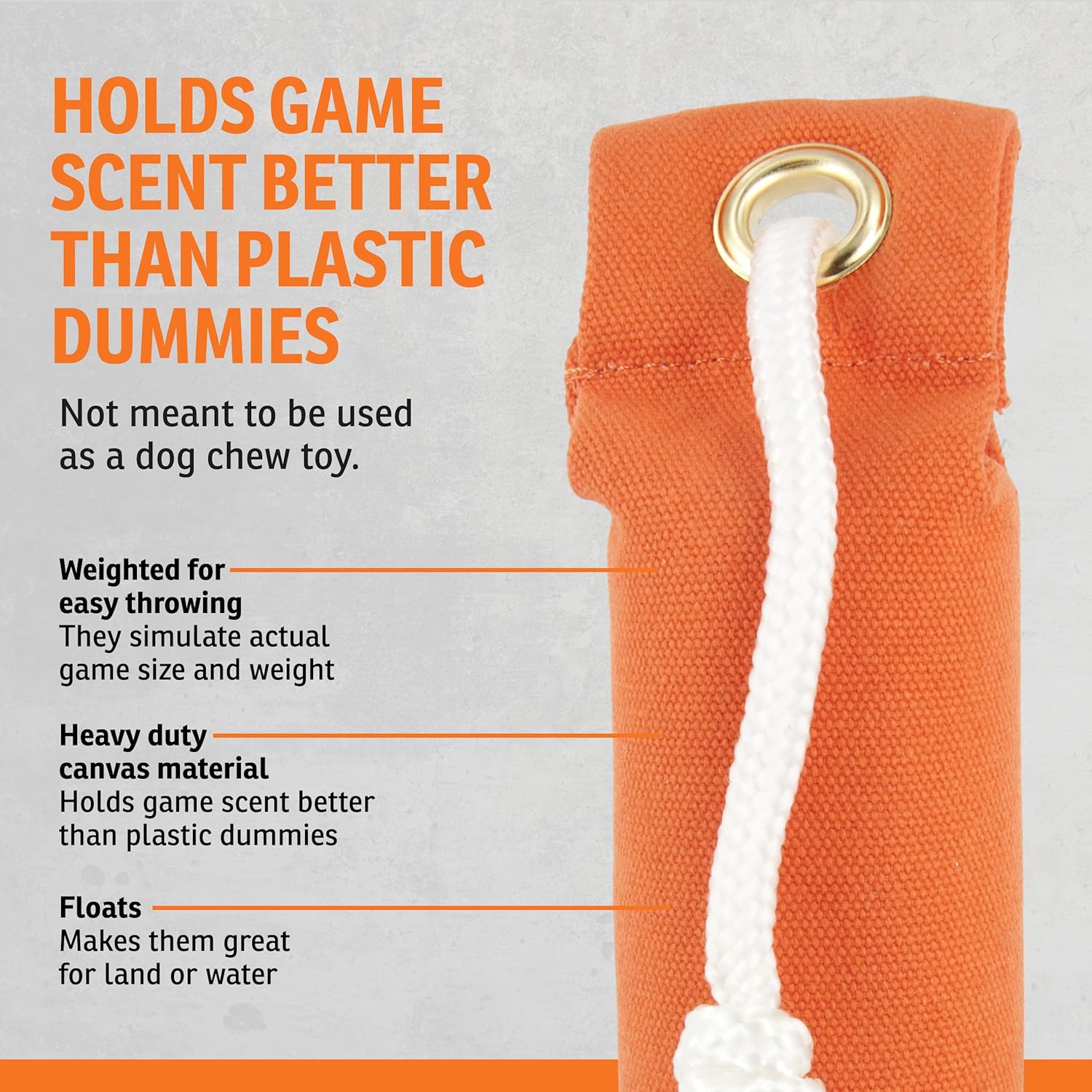 SportDOG Canvas Dummies – Hunting Dog Training Tool – Game Scent Absorber – Water-Ready Bumper – Durable Field Dummy – Weighted Toy – Puppy Size – 2.25″ W X 8.5″ L – Orange