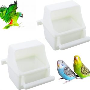 2 Pcs Small Bird Slot Feeder No Mess Cage Hanging Feeder Cup Plastic Food & Water Dispenser Bowl