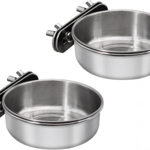 2 Pcs Small Bird Feeding Dish Cups,Parrot Food Bowl Cage with Clamp Holder Stainless Steel,Birdcage Coop Water Feeder for Cockatiel Parakeet Macaw Finches Lovebirds Small Animals (2 Pack, Small)