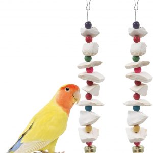 2 Pack Bird Toys with Cuttlebone, Parakeet Toys, Bird Beak Grinding Stone, Cage Accessories for Parakeets, Cuttlefish Bone for Budgies, Cockatiels, Lovebirds, Green Cheeks, Small to Medium Birds