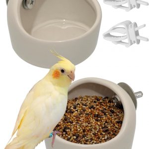 2 Pcs Ceramic Bird Food Bowl Hanging Parrot Food Bowl Pet Bird Bowls Birds Cage Holder for Budgie Finches Lovebirds Parakeet Cockatiels (White)