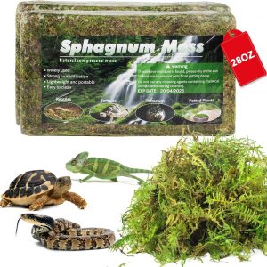 28OZ Sphagnum Moss for Reptiles, Terrarium Natural Green Dried Peat Habitat Bedding Plants for Snakes Gecko Forest Frogs and Turtle Accessories Substrate (100QT)