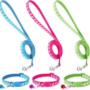 3 Pack Puppy Collar and Leash Dog Collar and Leash for Small Dogs Pet Cat Kitten Collar and Leashes Adjustable Training Rope Quick Release Paw Print Soft Nylon Pet Collar