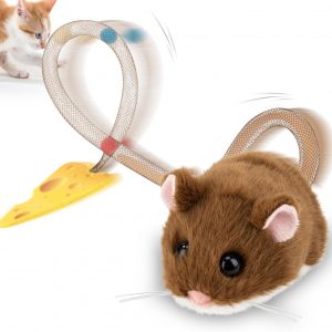 Migipaws Interactive MigiMouse Cat Toy 360° Rolling & Spin with Wiggling Tail for Indoor Cats Smart Motion Sensor, Realistic Squeak, Rechargeable Plush Kitten Toy (Brown)