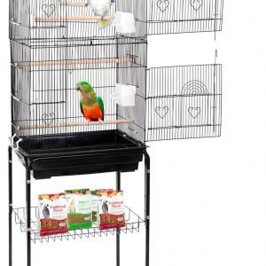 Nova Microdermabrasion 63 Inch Medium Pet Bird Cage with Detachable Rolling Wrought Iron Stand for Cockatiel, Sun Conure, Parakeet, Finch, Budgie, Lovebird, and Canary Birds