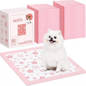 MIZOK Puppy Pads 22″x 22″ with Leak-Proof Quick-Dry Design Pee Pads for Dogs Potty Training, 6-Layer Standard Absorbency Dog Pee Pads Regular Size, Pink Cherry Blossom Pattern (50 Counts)