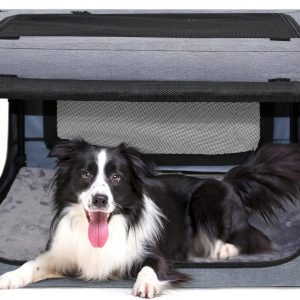 NEZUC Soft Collapsible Dog Crate – 24 Inch Portable Soft Sided Travel Dog Crates for Small Dogs, 4-Door Foldable Dog Carrier, Pet Kennel Indoor & Outdoor (Gray, 24.0″ L x 17.0″ W x 17.0″ H)