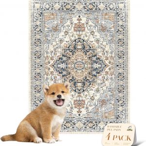 nunubaby 4PACK Washable Pee Pads for Dogs, Stylish, Non-Slip and Leak-Proof Pee Pads. Reusable Potty Pads for Dogs for Crates and Floors.(Beige/Multi, 18″ x24″)