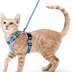 rabbitgoo Cat Harness and Leash for Walking, Escape Proof Soft Adjustable Vest Harnesses for Cats, Easy Control Breathable Reflective Strips Jacket, Light Blue & Pink, Small