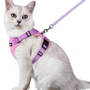 rabbitgoo Cat Harness and Leash for Walking, Escape Proof Soft Adjustable Vest Harnesses for Cats, Easy Control Breathable Reflective Strips Jacket, Pink & Purple, Medium