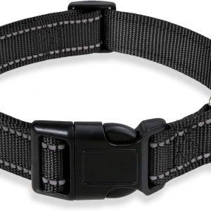 Reflective Dog Collar with Buckle Adjustable Safety Nylon Collars for Small Dogs, Black S