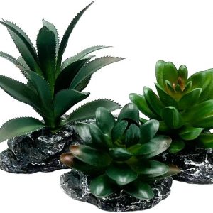 Smoothedo-Pets Reptile Artificial Plants Succulent Terrarium Decor Desert Rainforest Plant Lizard Beard Chameleon Gecko Snake Amphibious Sea Turtle Tank Accessory (Dark-Green-3pcs-Se)