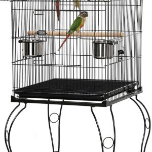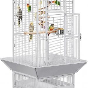 Yaheetech Wrought Iron Bird Cages, Play Top Large Aviary with Stand for Cockatiel Parrot Sun Parakeet Conures Lovebird Budgie Finch African Grey White, 61-inch