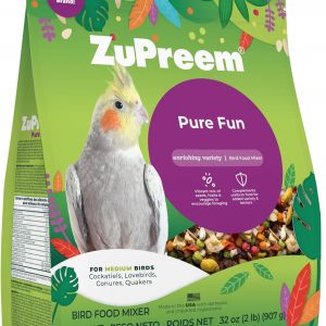 ZuPreem Pure Fun Bird Food, Cockatiel, Lovebird, Quaker, Small Conure, Lorikeet, Seed and Pellet Blend for Medium Birds, Food Mixer Topper, Enriching Variety, Made in USA (M, 2 lbs)