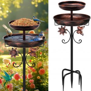 Daoeny Bird Bath for Outside, 42In Vintage Freestanding Birdbaths for Outdoors, Double Metal Bird Bath Feeder Bowls for Garden Patio Yard Lawn Decor, Upgraded 5-Pronged Base (Antique Bronze)