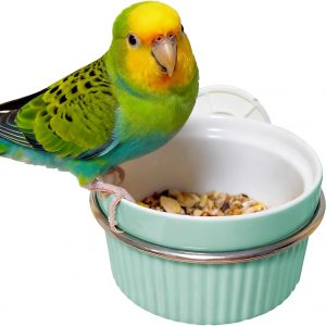 Ceramic Bird Feeder for Cage Bowl – Auto-Refill Easy Clean Dishwasher Safe Food Dish for Parrots Cockatiels & Small Birds