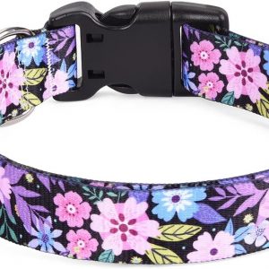 Dog Collar with Bohemia Floral Tribal Geometric Patterns – Soft Ethnic Style Collar Adjustable for Small Medium Large Dogs(Floral Pink,L)