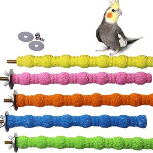 kathson 5 PCS Bird Perch Parrot Stand Cage Accessories Natural Wooden Stick Paw Grinding Rough-surfaced Chew Toy for Cockatiels,Cockatoo,Lorikeet,Conure,Parakeet (Random Color,6.29inch)