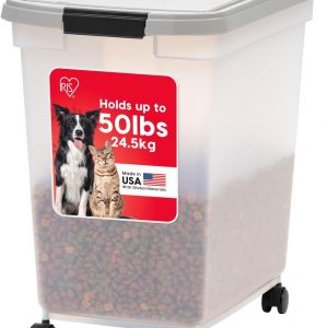IRIS USA Airtight Dog Food Storage Container, WeatherPro, Up to 50 lbs, Removable Wheels, for Dog Cat Bird and Other Pet Food Storage Bin, Keep Fresh, Translucent Body, Made in USA, Clear/Gray