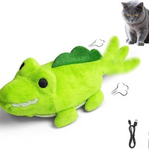 Interactive Cat Toys for Indoor Cats – Self-Charging Croc Chase Toy with 360° Motion, Wagging Tail & Catnip, Automatic Exercise Toy for Bored Kittens/Adults(Short Plush)